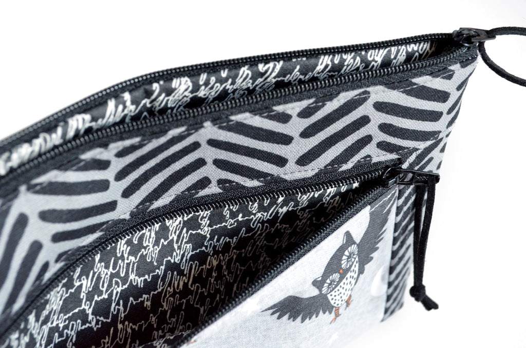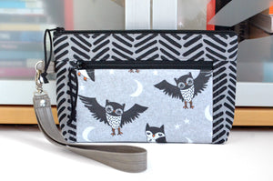 Grey Night Owl Double-Zip Wristlet