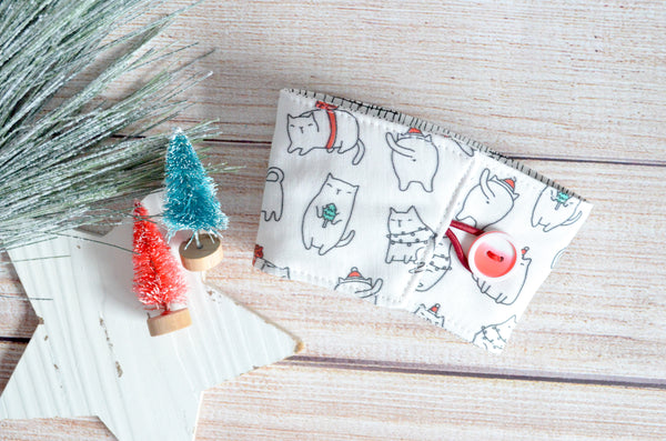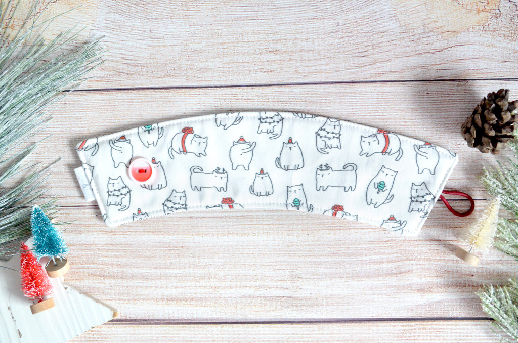 โ These coffee sleeves are made from a variety of holiday-themed fabrics, and paired with the perfect button to match! Exact fabric placement may vary slightly from the photos shown.ย