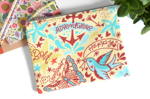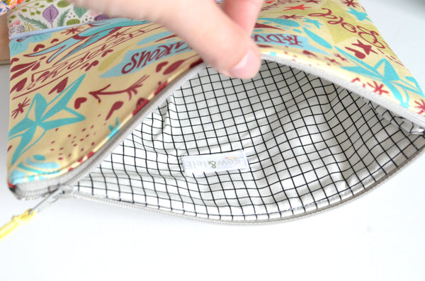 These large "all-purpose" pouches feature a variety of gorgeous prints that you may not see in the shop again! These prints have been designed by independent designers and artists. On the back-side you'll find a beautiful matching linen or canvas fabric.