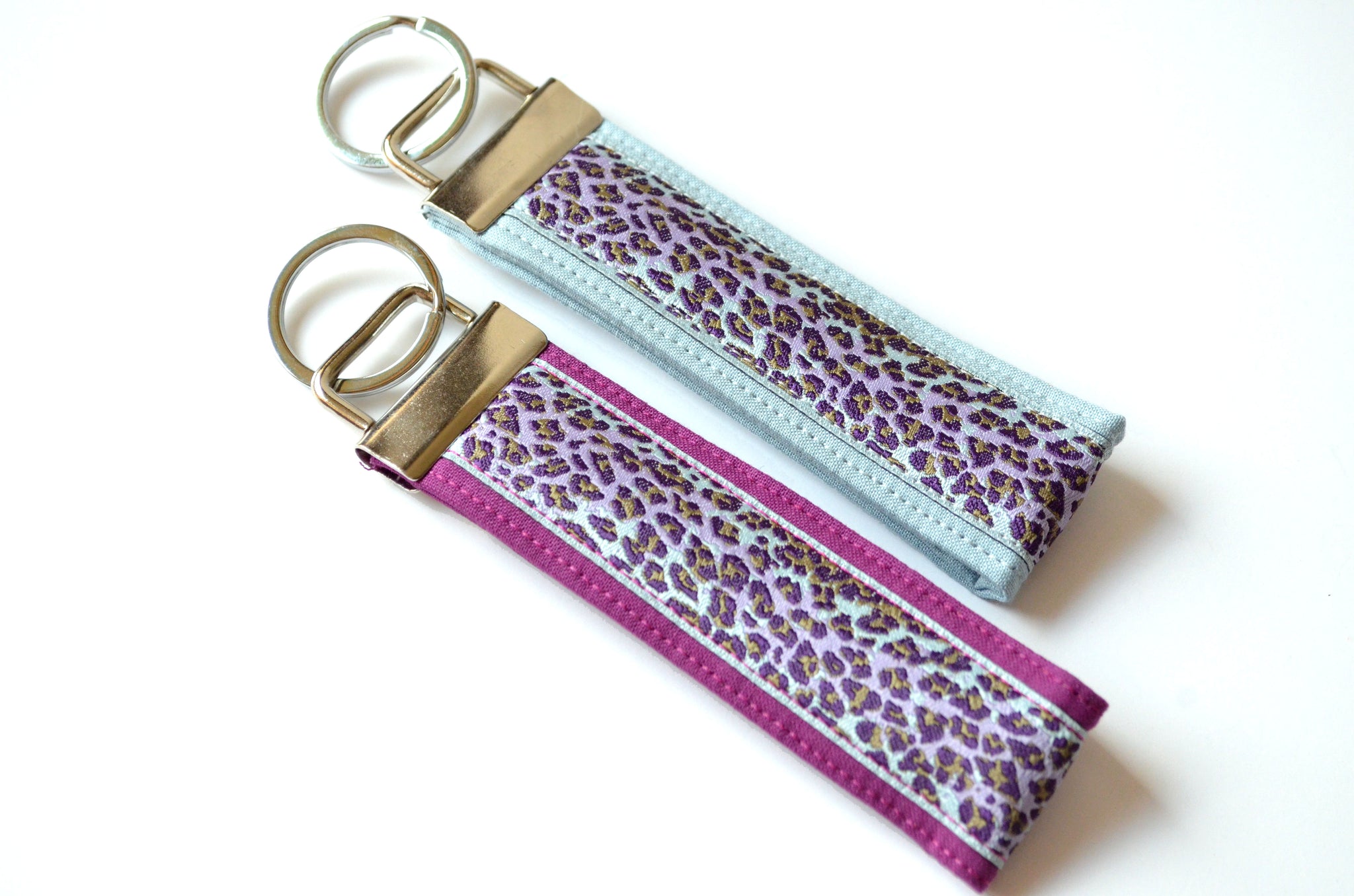 โ These blue and purple key fobs feature a beautiful mix of cotton fabric and leopard-print ribbon! Please note that exact pattern-placement of the ribbon may vary slightly from the photos.