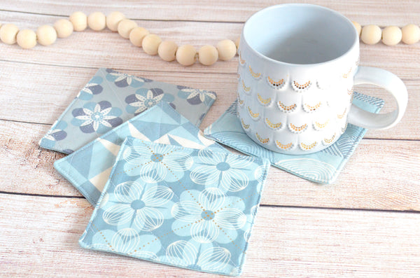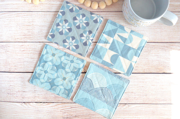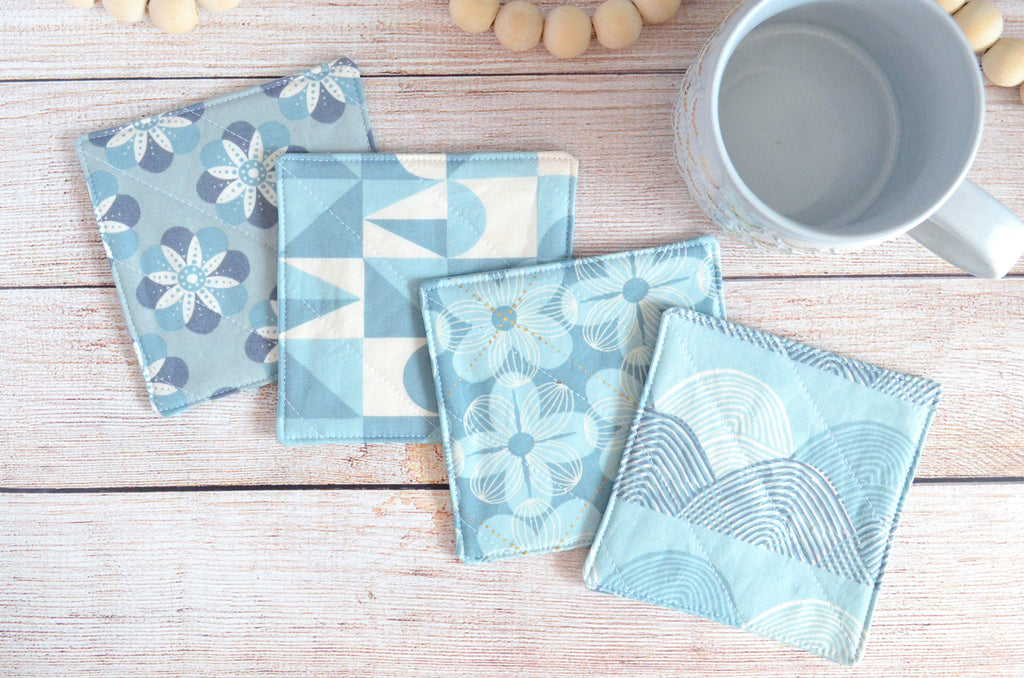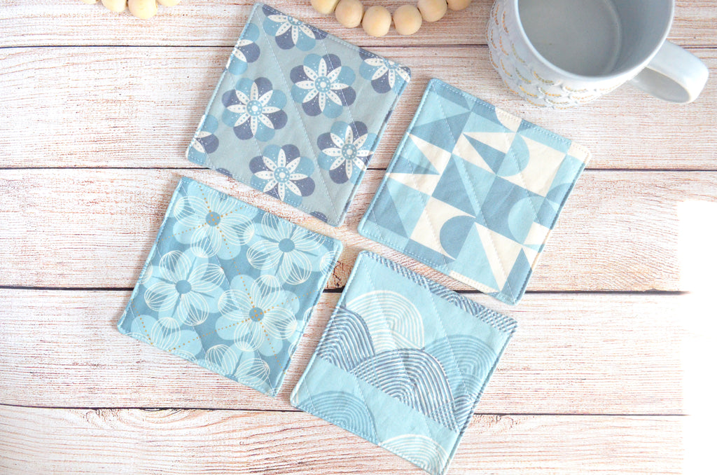 Our quilted fabric coaster sets are sure to bring a pop of colour to your coffee table or dining room, while also providing you with practicality and versatility! Made with a layer of cotton quilt-batting inside, these coasters are great at soaking up unwanted condensation from your drink, and wonโt stick to your glass when you pick it up! Available in a wide-range of fun prints and colours, these coasters also make for the perfect unique housewarming or hostess gift!