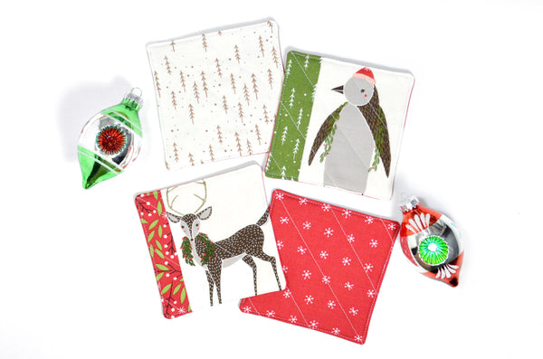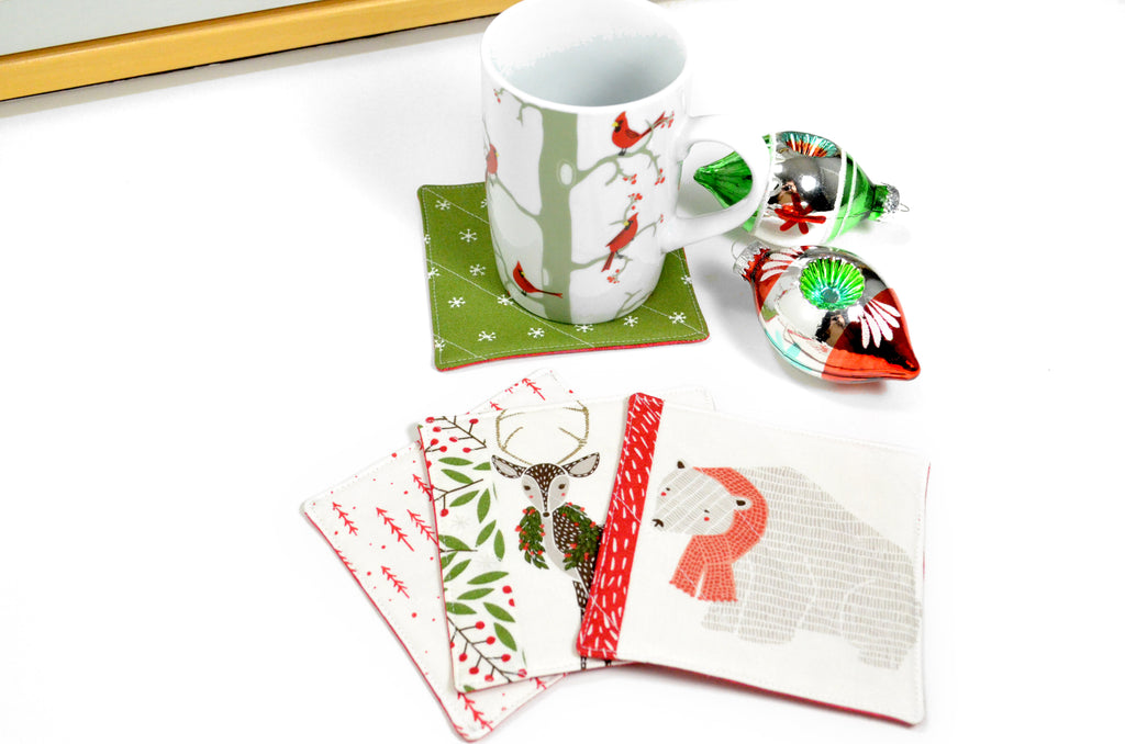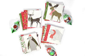 โ These fabric coaster sets feature a very fun selection of holiday animals from Gingiber's "Merriment" fabric collection, perfect for your next cocktail party or Christmas gathering! Each set contains two feature animals, and two other coordinating prints.