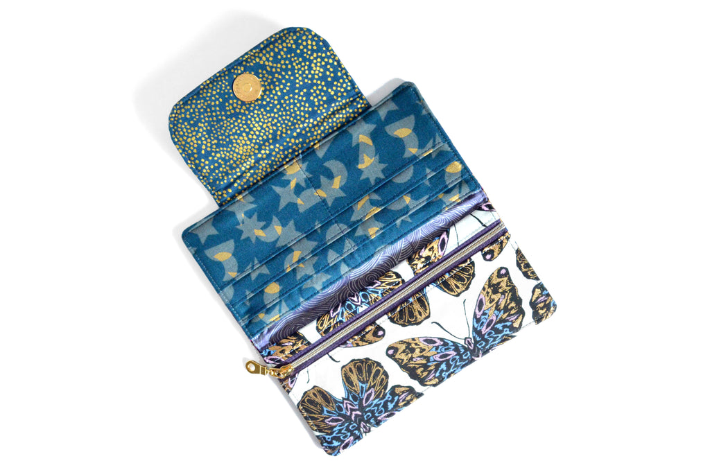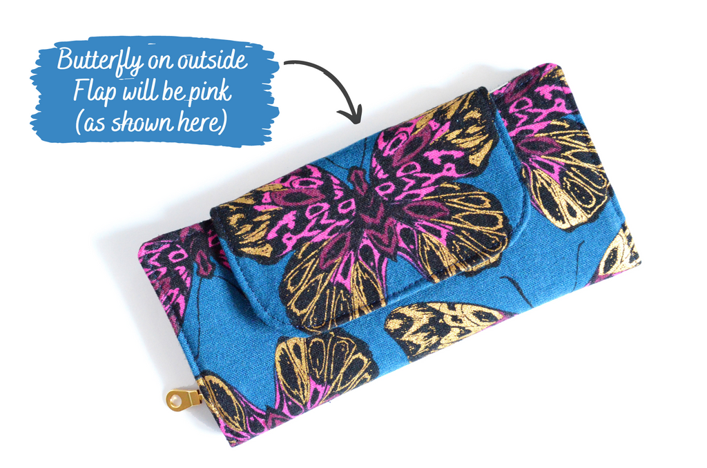 โ This wallet features two beautiful butterfly canvas fabrics, withย coordinatingย interiors! Please note, exact fabric placement may vary from some of the photos shown.