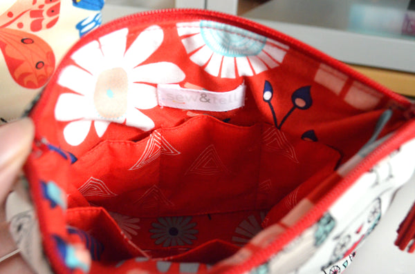โข Fully lined on the interior, in a coordinating designer print