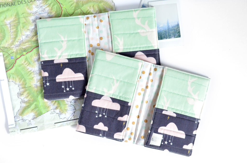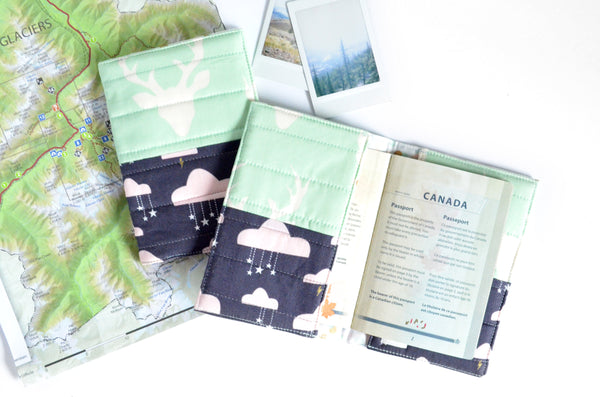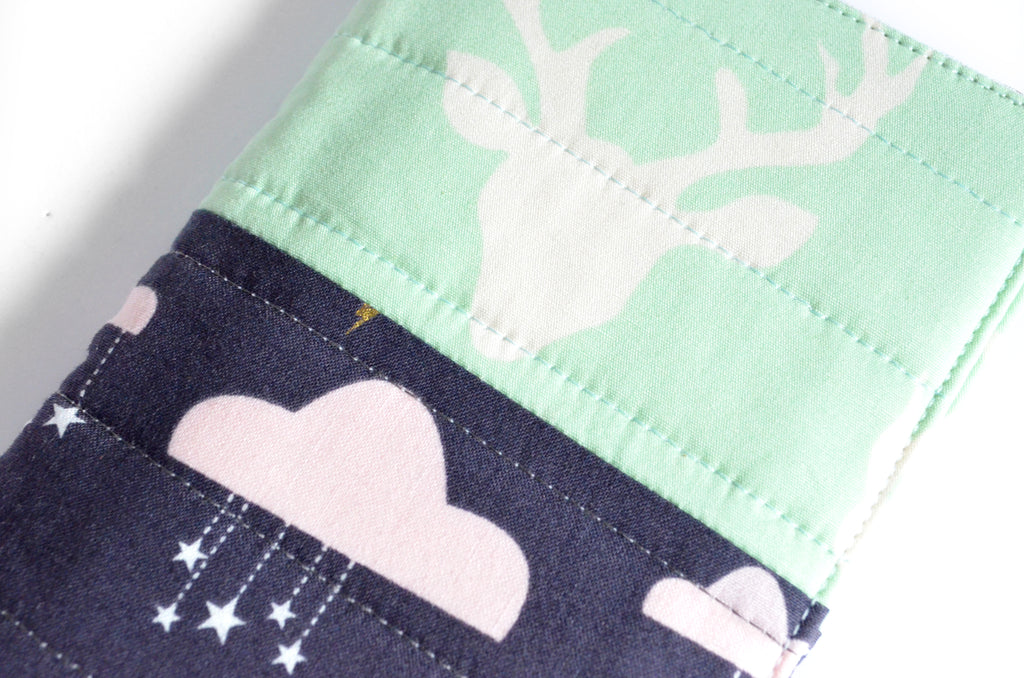 โ Thisย mint-blue & grey passport cover features aย beautiful deer & cloud print fabric! Please note that exact fabric placement may vary from some of the photos shown.