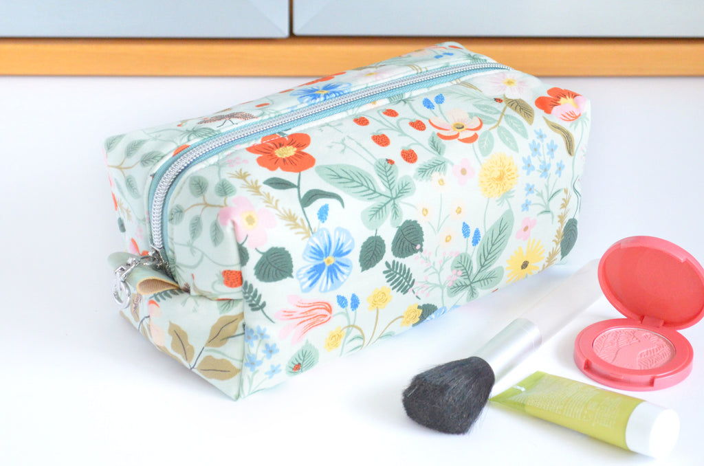 These toiletry boxy-bags are perfect for use both during travel and for everyday organization, featuring bright and beautiful designer cotton fabrics. Their large size and boxy shape allow you to keep your makeup, toiletries, hair accessories, and more, all together in one place during travel! The large zipper which runs the entire length of the bag also allows it be opened up completely, providing easy access to view and find whatever it is you need inside.