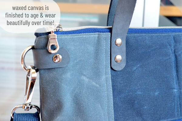 โข Made with quality waxed canvas & designer fabrics on the exterior
