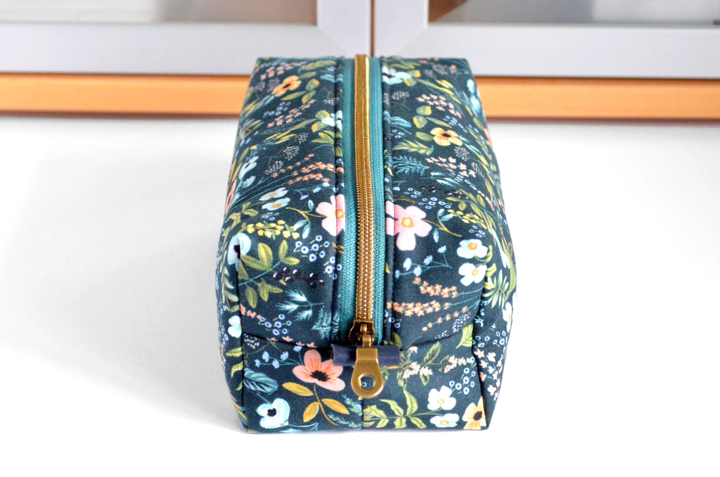 These toiletry boxy-bags are perfect for use both during travel and for everyday organization, featuring bright and beautiful designer cotton fabrics. Their large size and boxy shape allow you to keep your makeup, toiletries, hair accessories, and more, all together in one place during travel! The large zipper which runs the entire length of the bag also allows it be opened up completely, providing easy access to view and find whatever it is you need inside.