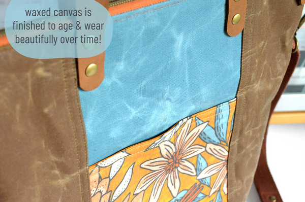 * Waxed canvas is a high-quality fabric made by Merchant & Mills in the UK, which has been treated with a unique blend of oils and waxes for a rich, textural finish. Please be aware that it has been finished to age, wear, and "patina" with character over time, which is part of it's natural beauty and appeal! *