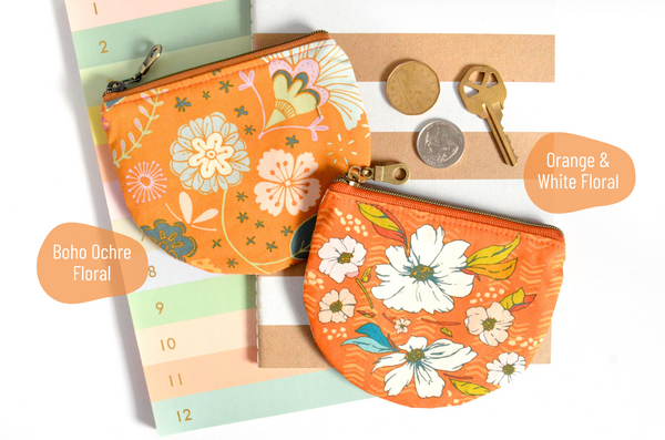 โ˜…ย These orange coin purses feature two beautiful floral print fabrics, with a coordinating print on the inside!ย