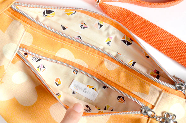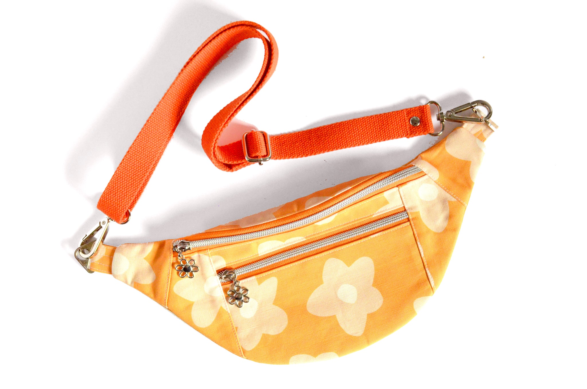 ★ This fanny pack features an orange daisy canvas fabric exterior, with a matching interior! This bag also includes a coordinating adjustable cotton webbing strap.