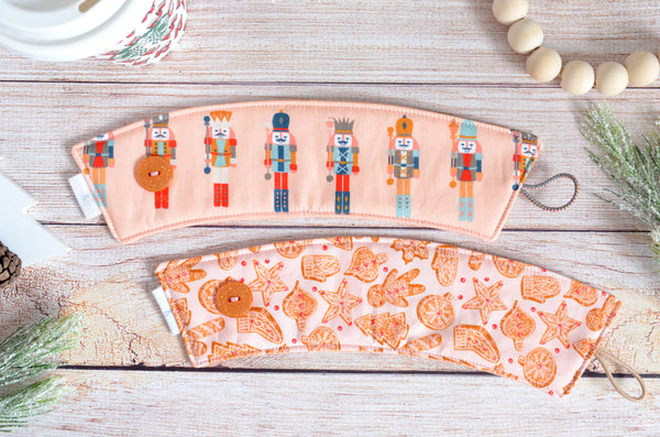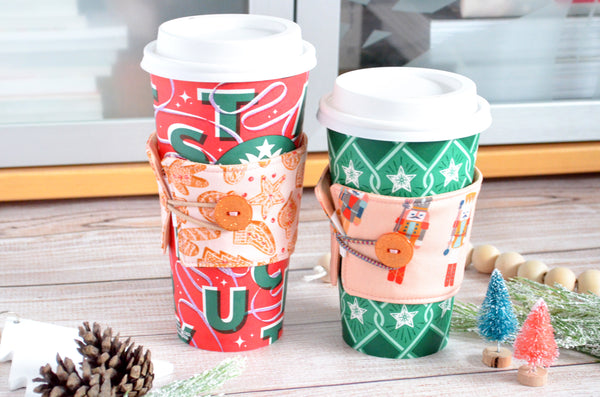 โ˜… Theseย fun coffee sleeves are made from a variety of holiday-themed fabrics, and paired with the perfect button to match! Exact fabric placement may vary slightly from the photos shown.ย