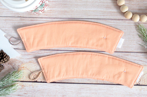 Calling all coffee and tea lovers! These reusable coffee sleeves are an eco-friendly alternative to disposable cardboard sleeves which often end up in the trash. Available in a wide range of bright and beautiful fabrics and made with an inner layer of cotton batting, your hands will be kept safe from hot heat or the cold, wet condensation of iced beverages! The elastic and button closure makes these sleeves fully adjustable to fit a wide range of disposable cups or reusable tumblers and thermoses. Keep one in your bag, one at the office, and in the car for your coffee runs! Paired with a gift card to your local coffee shop, these make the perfect gift for the coffee or tea lover in your life!