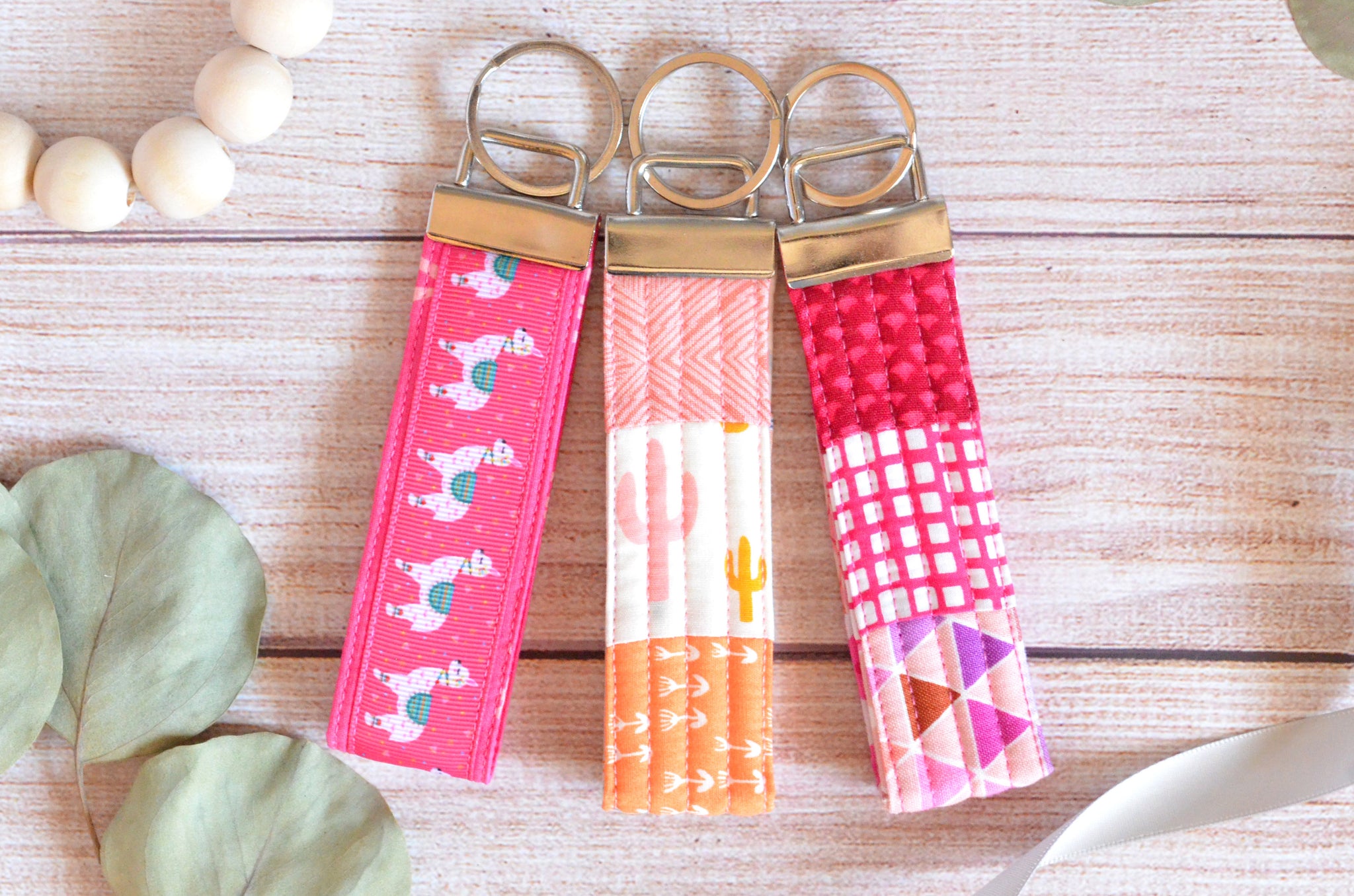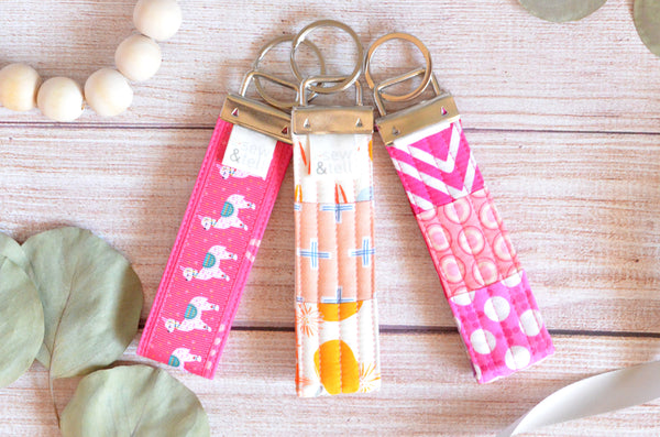 โข Assorted Patchwork Keychainโข Pink Llama Ribbonย Keychain