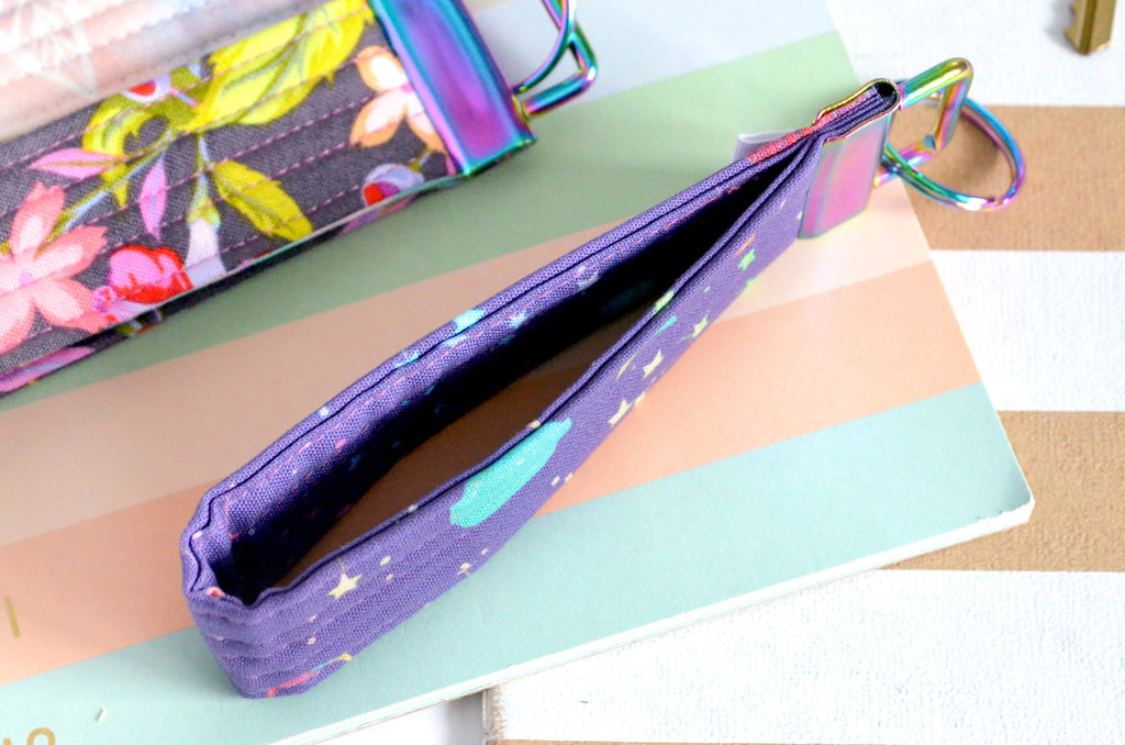 โ These purple key fobs feature a variety of fun fabrics!ย Please note that exact fabric placement may vary, as shown in the photos.