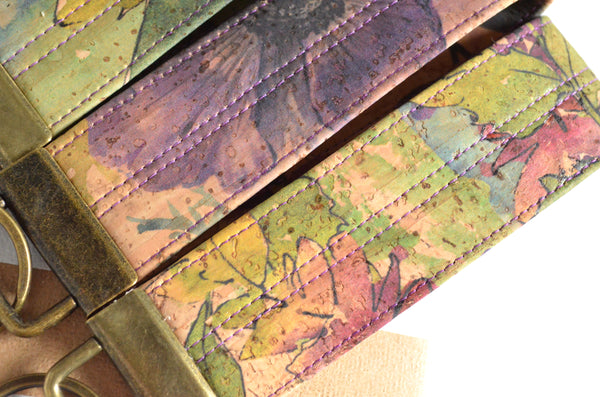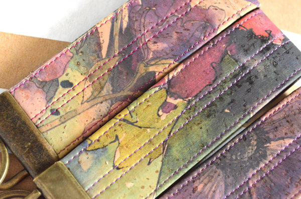 Purple Floral Cork Leather Keychain