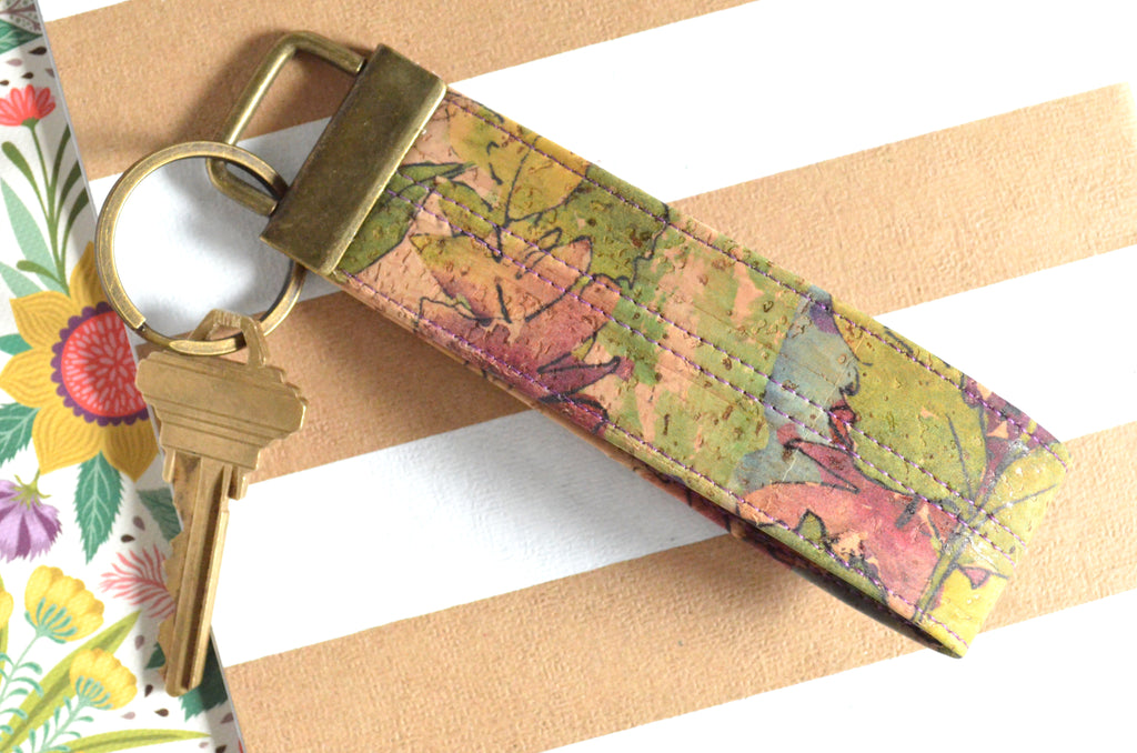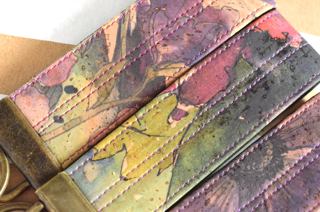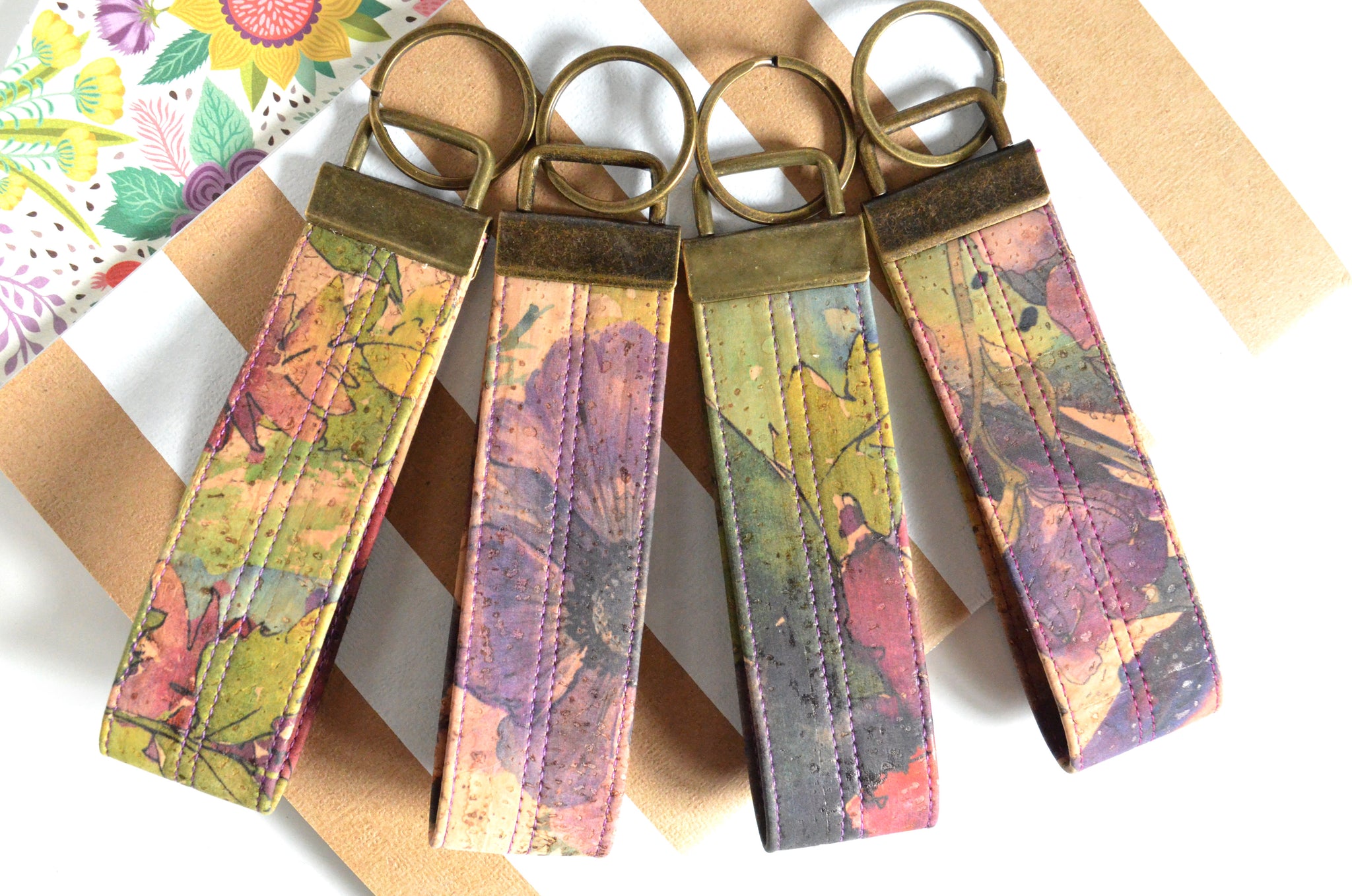 ★ These purple key fobs feature two gorgeous floral-print cork leathers!