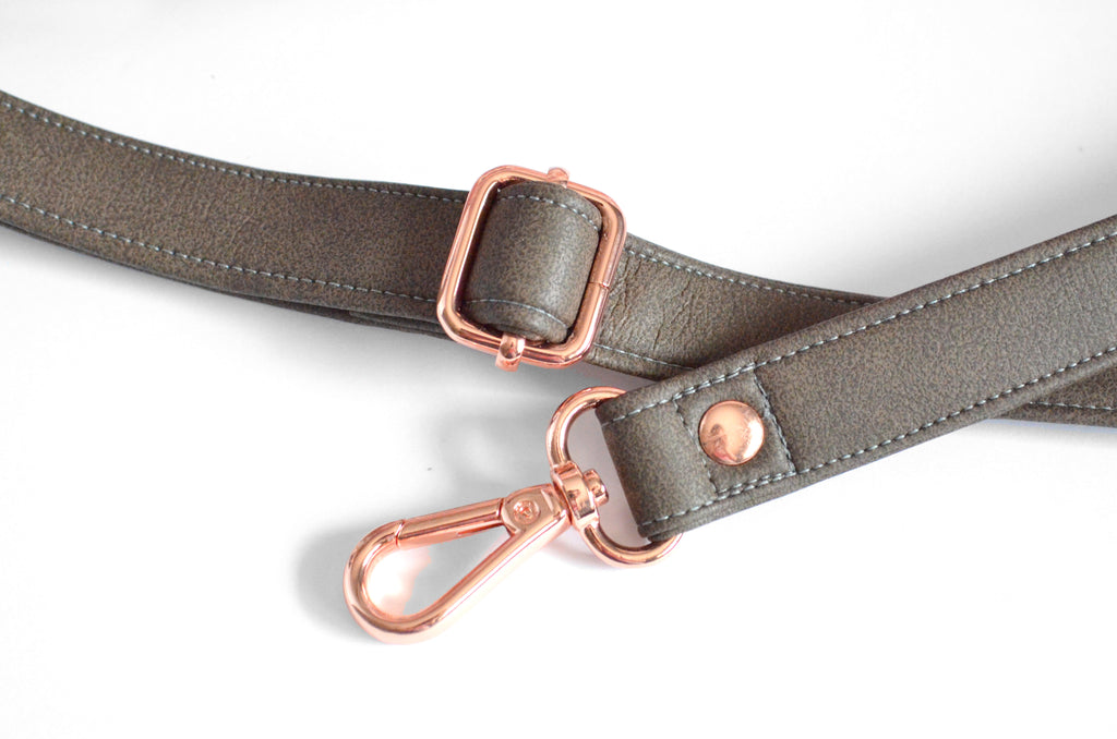 โข Includes a removable faux-leather crossbody strap which is adjustable