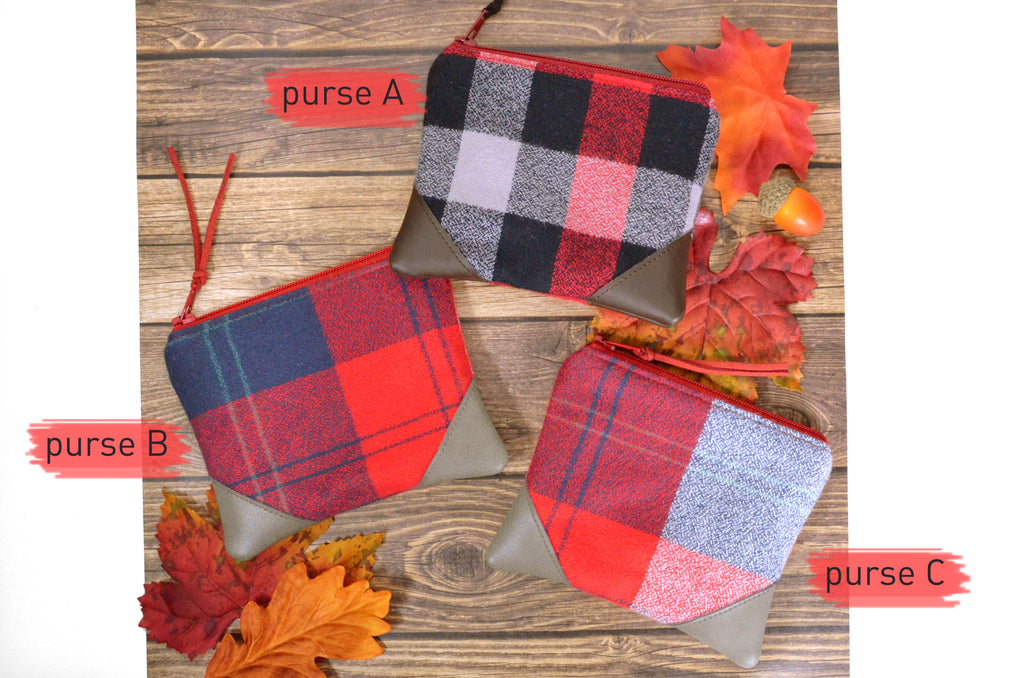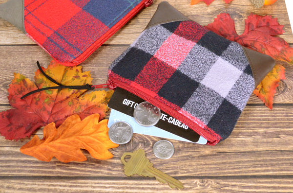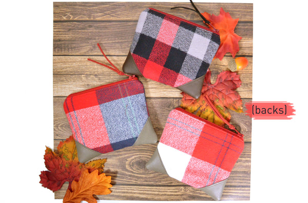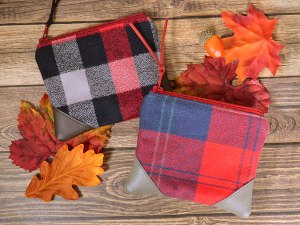 ★ These coin purses feature cozy flannel plaid prints, accented with a leather trim across the corners!