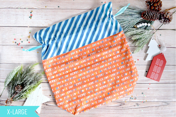 These adorable fabric gift bags are made from a variety of fun and festive cotton prints perfect for the holidays! Not only do these bags make gift-wrapping fast and easy, theyโre also a great eco-friendly alternative to traditional paper wrapping. These bags can be kept to re-use during the holidays year after year, or immediately afterwards for everyday storage. The simple-to-use pull ties make them perfect for storing childrenโs toys and games, while also making great knitting or sewing bags, keeping your supplies for each project organized.ย These bags are sure to make your friends and family smile when they receive their gift wrapped up in one these!