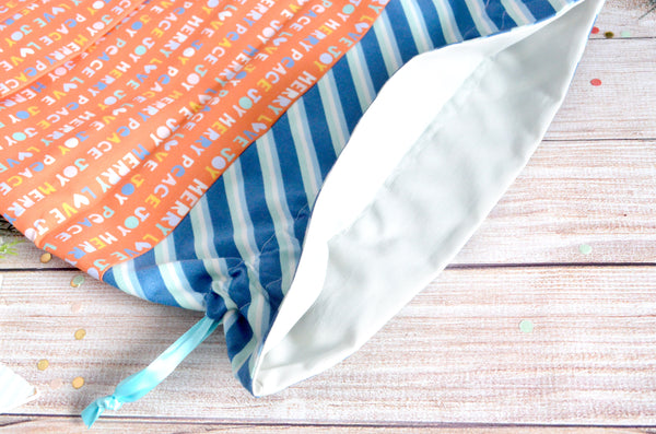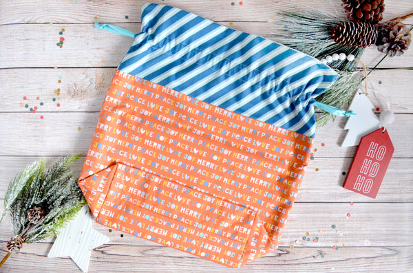โ Theseย bright drawstring bags are made from a variety of beautifulย holiday-themed fabrics! Please note, exact fabric placement may vary from some of the photos shown.ย