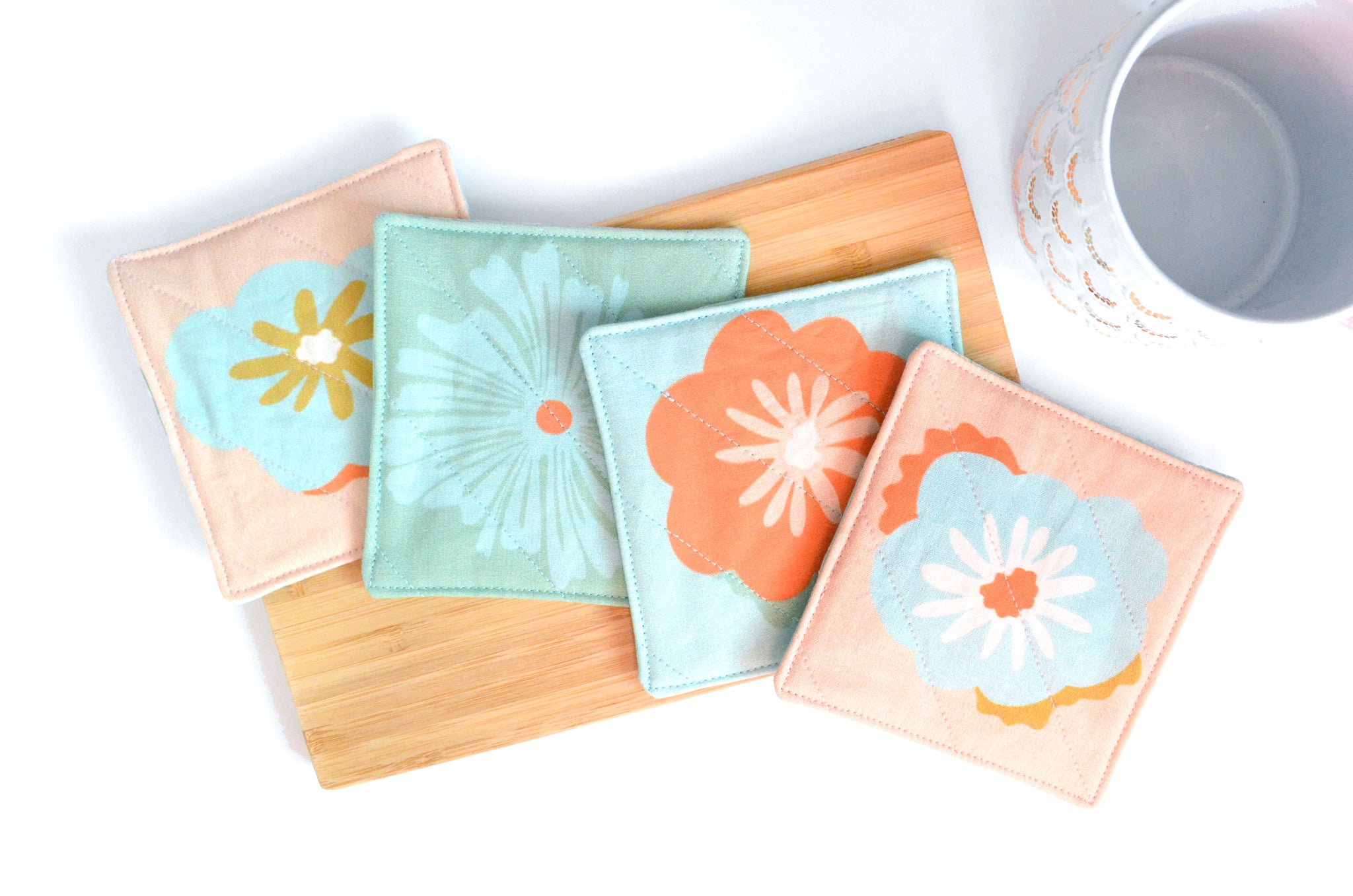 โ This set of four fabric coasters features a fun selection of floral fabrics, perfect for patio season! Please note, exact fabric placement may vary from some of the photos shown.