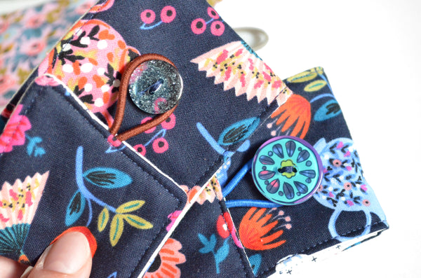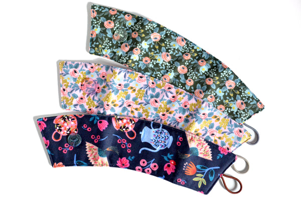 โ These coffee sleeves are made with beautiful Rifle Paper Co. floral & teacup print fabrics, paired withย matching buttons! Please note that exact fabric placement may vary from the photos shown.