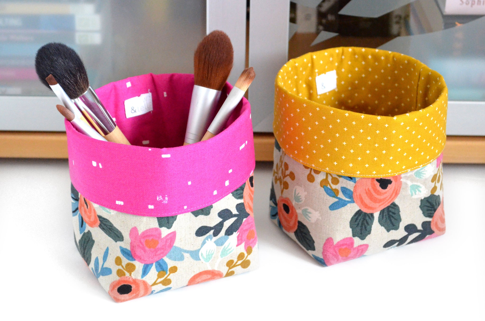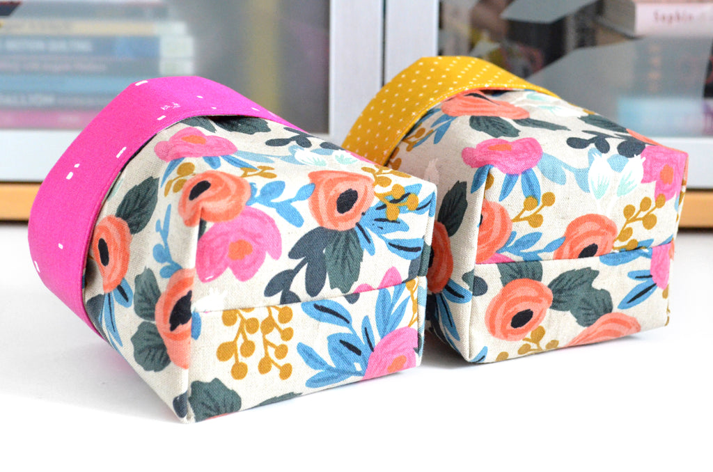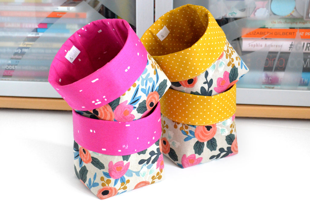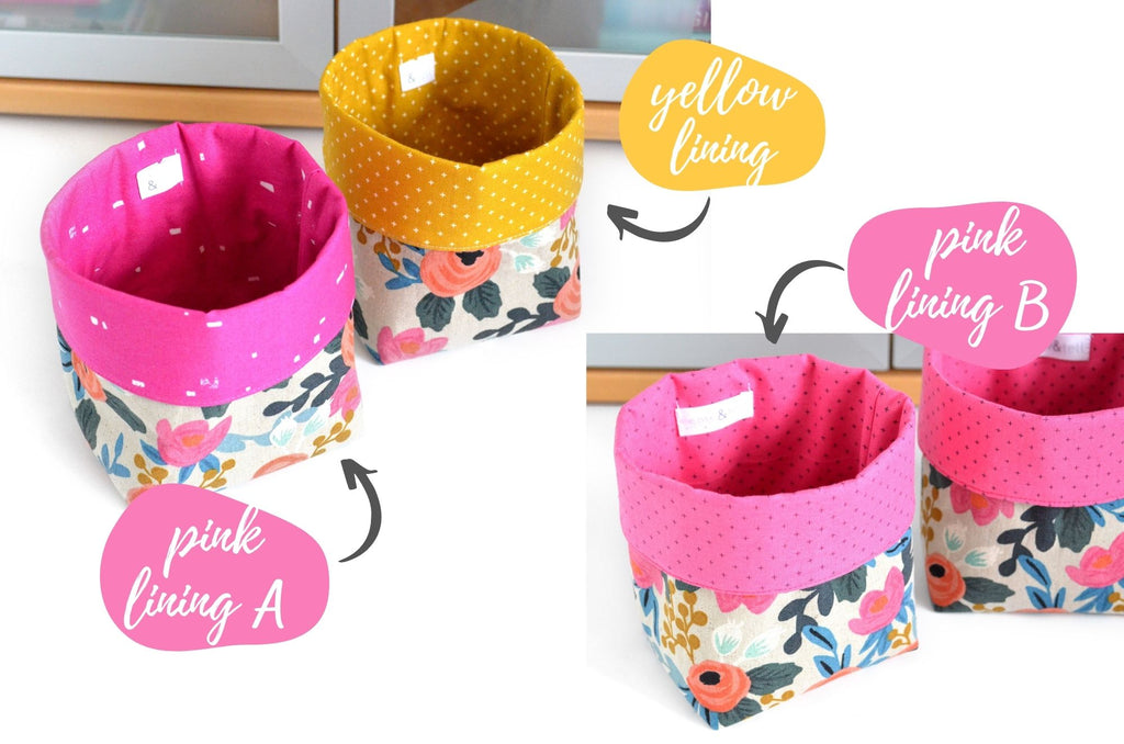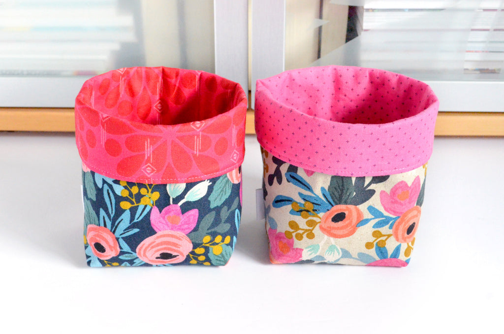 โ These fabric pots are made from a variety of beautiful canvas-cotton fabrics, with coordinating linings which peek out the top! As this is a large-scale print, please note that exact fabric placement may vary from some of the photos shown.