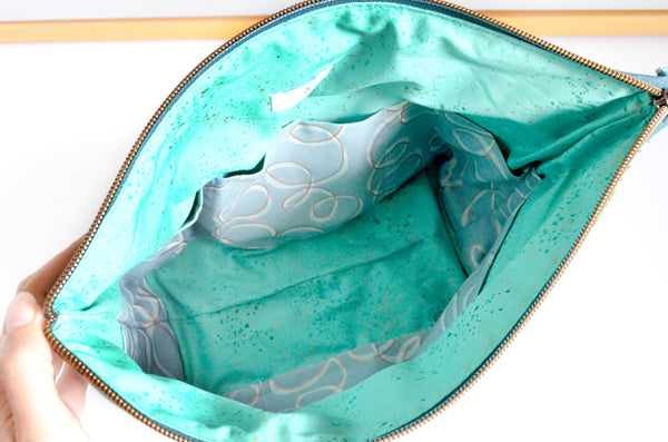 ย These toiletry bags are perfect for use both during travel and for everyday organization, featuring bright and beautiful designer cotton fabrics. The jumbo toiletry bags are the largest size of zippered pouch available in our shop, measuring a generous 13-inches across the top and 8-inches tall, with an extra-wide gusseted bottom! They feature six interior pockets, which means you'll easily stay organized despite how much you can fit inside! Both the boxy-style and jumbo toiletry bags are made with a gorgeous coordinating faux-metal zippers, and cork-leather pull tabs on the ends for easy opening. Each bag is also made with the perfect combination of cotton batting and interfacing, which makes these bags ultra-plush yet sturdy! Made in a wide variety of gorgeous prints and patterns, you're sure to find the perfect bag for yourself or for gifting!