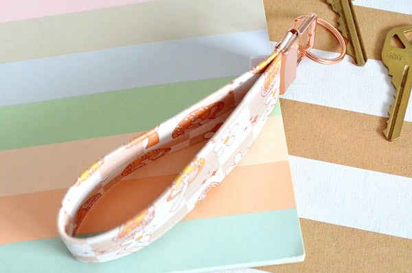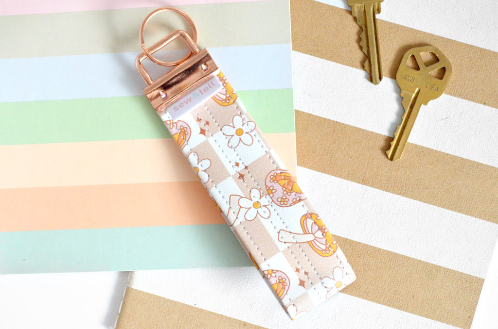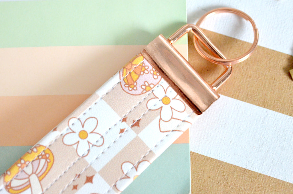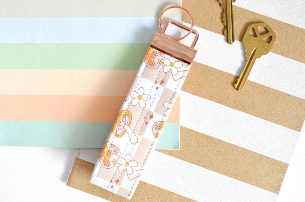 โ This key fob features a fun retro mushroom faux-leather print!