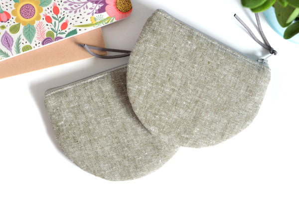 These round-bottom coin purses feature a variety of gorgeous prints that you may not see in the shop again! These prints have been designed by independent designers and artists. On the back-side you'll find a beautiful matching linen or canvas fabric.