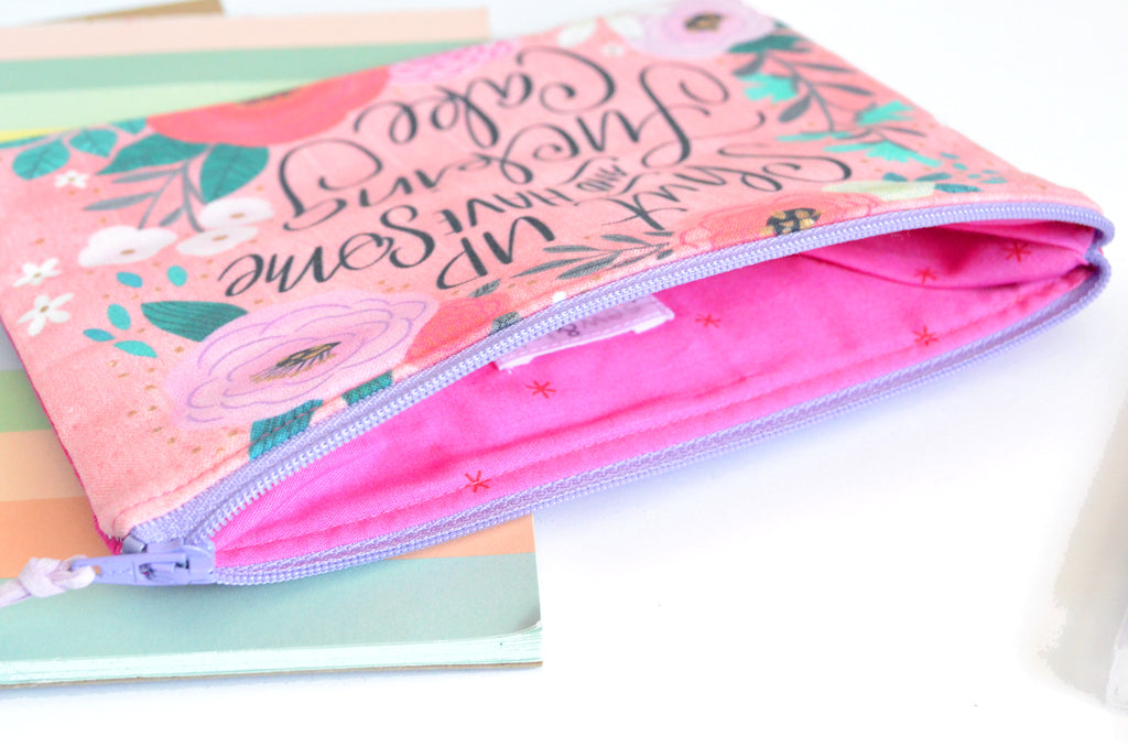 ★ This pink "sweary" pouch will measure approximately 6" tall by 8" wide. Please note, exact fabric placement may vary from some of the photos shown.