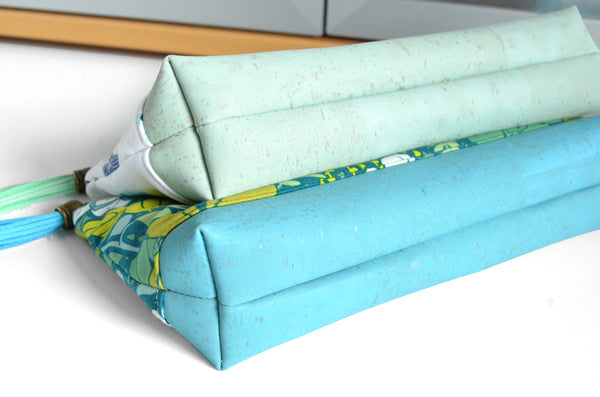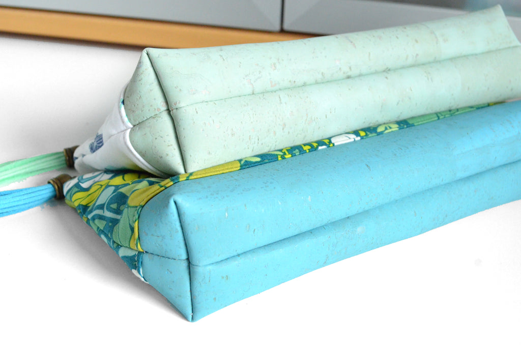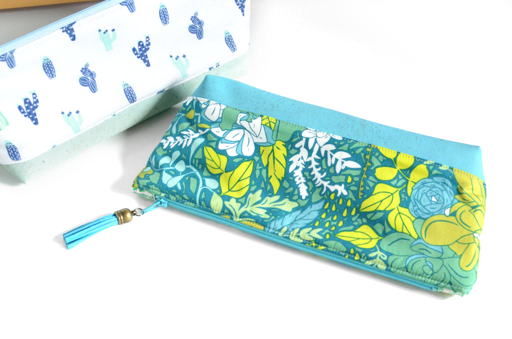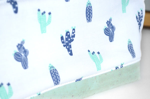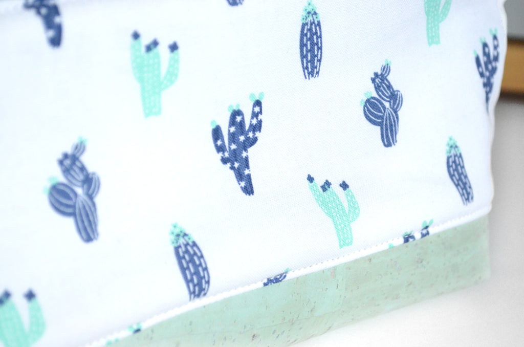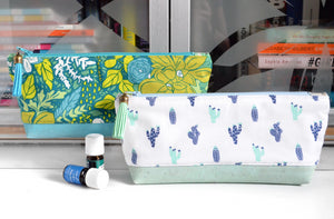 ★ These blue, green, & white essential oil pouches feature fun cacti and succulent fabrics, accented by beautiful cork leather bottoms!