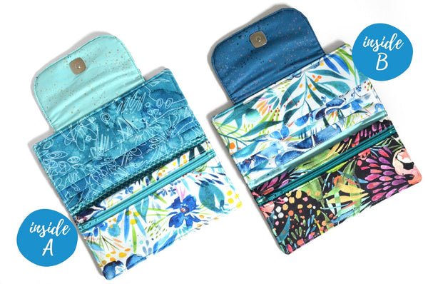 โ This wallet features a floral print canvas or black linen exterior, withย coordinatingย interiors!