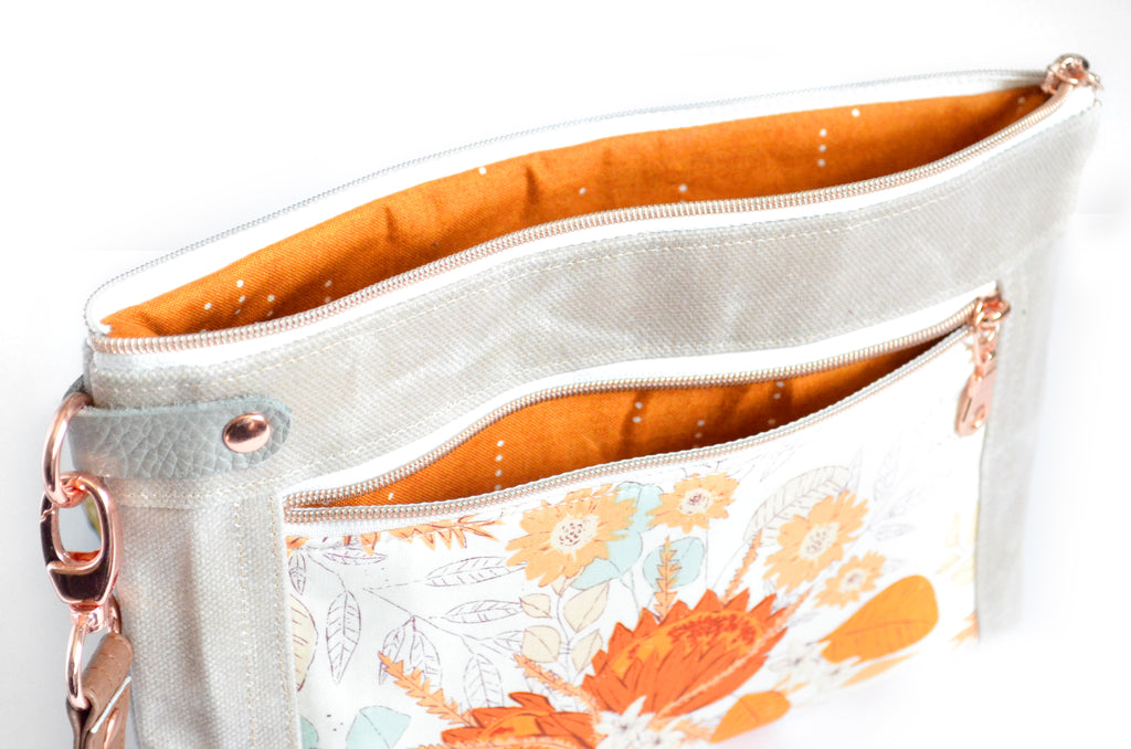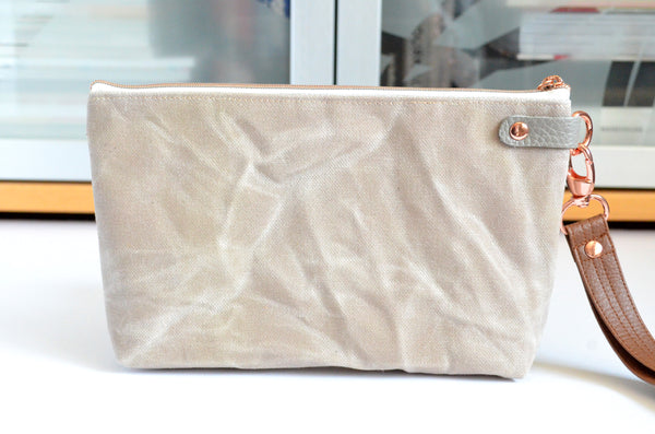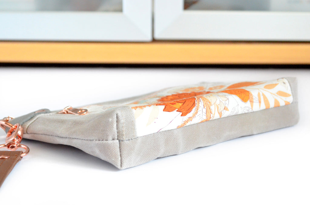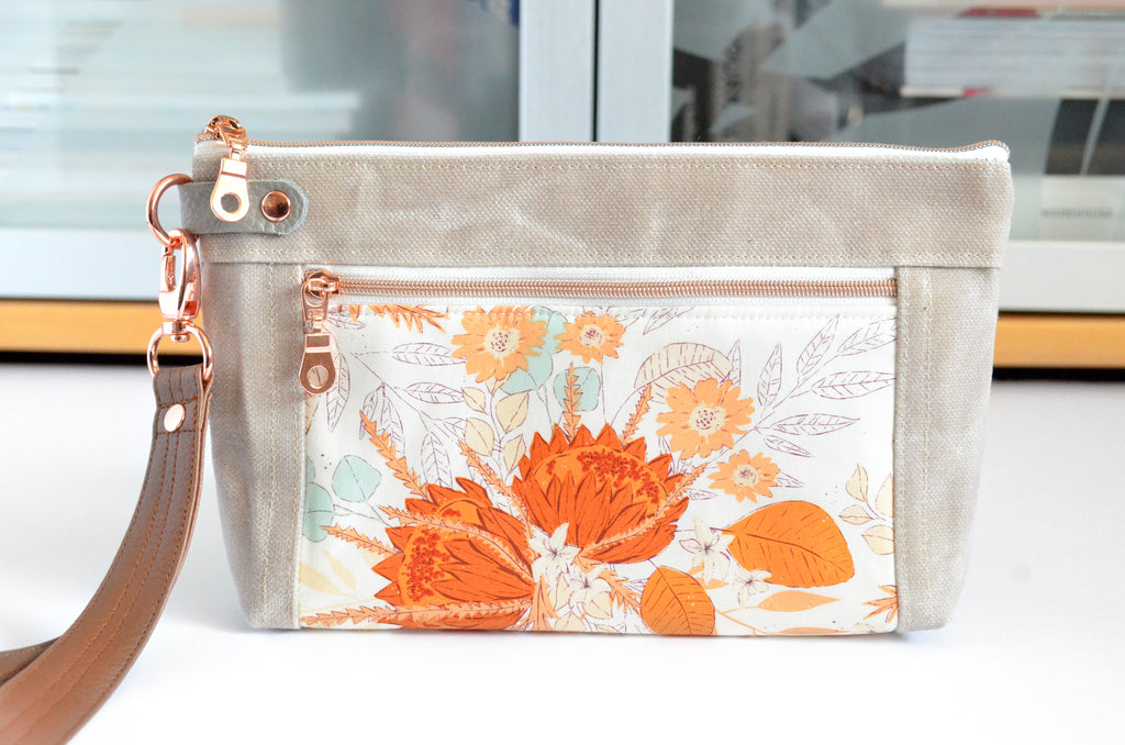 Waxed Canvas Beige Harvest Floral Double-Zip Wristlet