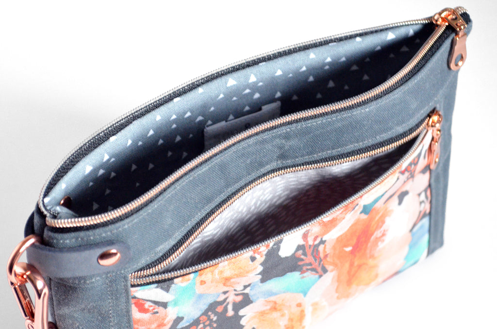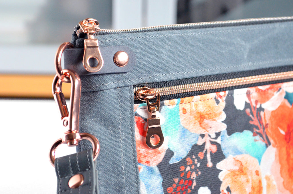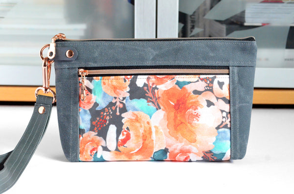 Waxed Canvas Rose-Gold Floral Double-Zip Wristlet