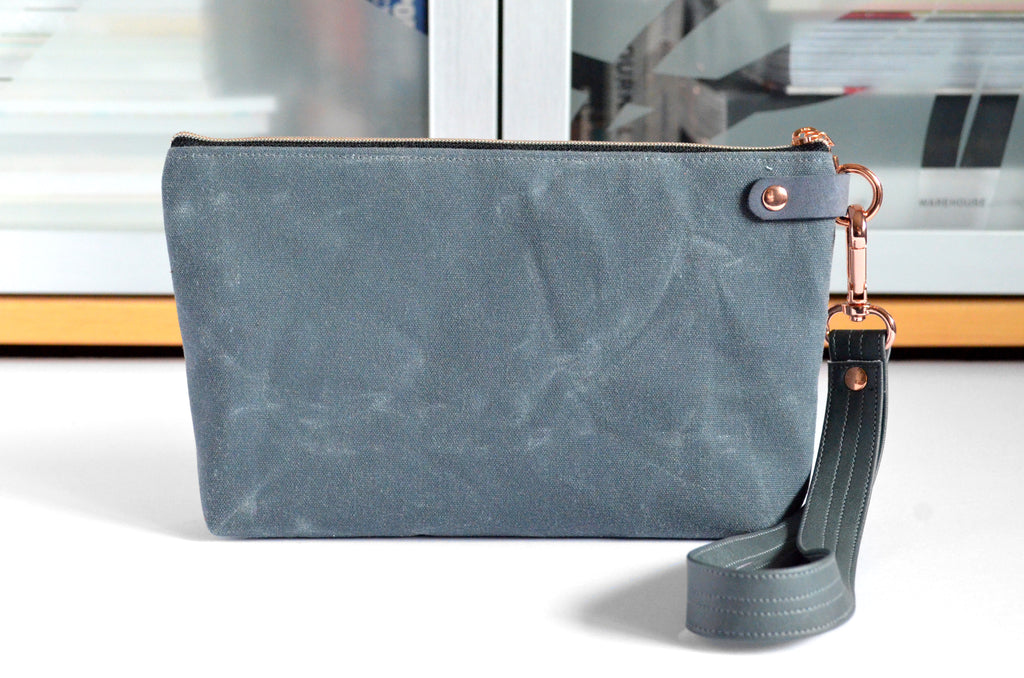 ★ Pouch will measure approximately 5" tall by 8" wide, with a 1.5" gusseted bottom. Wrist strap will measure approximately 13“ long (forming a 6.5” loop).