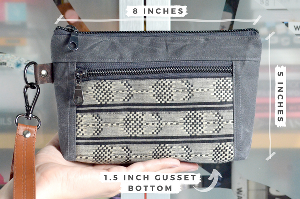 ★ Pouch will measure approximately 5" tall by 8" wide, with a 1.5" gusseted bottom. Wrist strap will measure approximately 13“ long (forming a 6.5” loop).