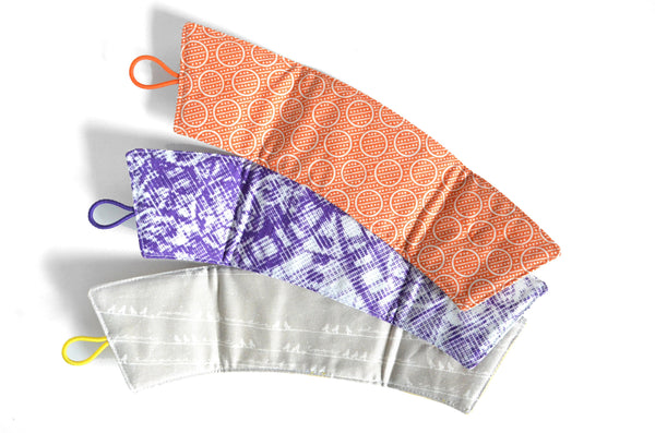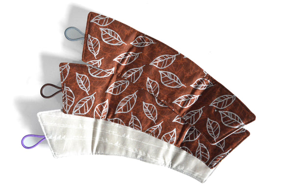 Calling all coffee and tea lovers! These reusable coffee sleeves are an eco-friendly alternative to disposable cardboard sleeves which often end up in the trash. Available in a wide range of bright and beautiful fabrics and made with an inner layer of cotton batting, your hands will be kept safe from hot heat or the cold, wet condensation of iced beverages! The elastic and button closure makes these sleeves fully adjustable to fit a wide range of disposable cups or reusable tumblers and thermoses. Keep one in your bag, one at the office, and in the car for your coffee runs! Paired with a gift card to your local coffee shop, these make the perfect gift for the coffee or tea lover in your life!