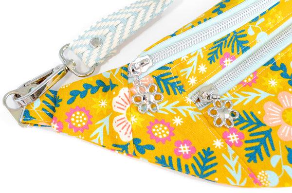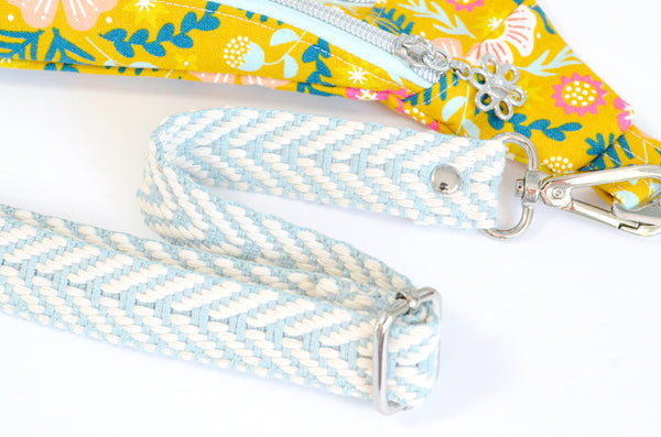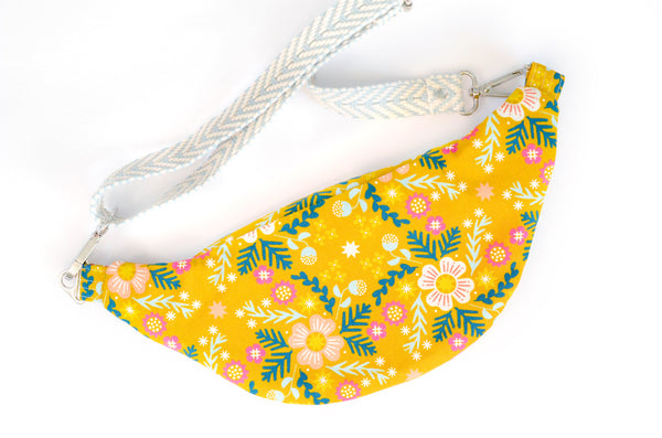 ★ This fanny pack features a yellow floral canvas fabric exterior, with a matching yellow interior! This bag also includes a coordinating adjustable cotton webbing strap.